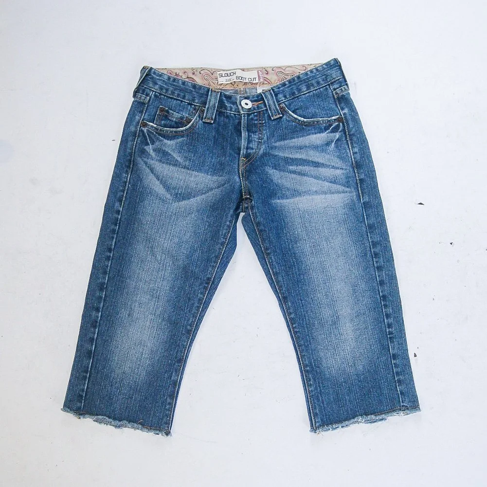 ♡ vintage 2000s mid - low rise capris with relaxed bootcut fit in stoney medium wash denim.