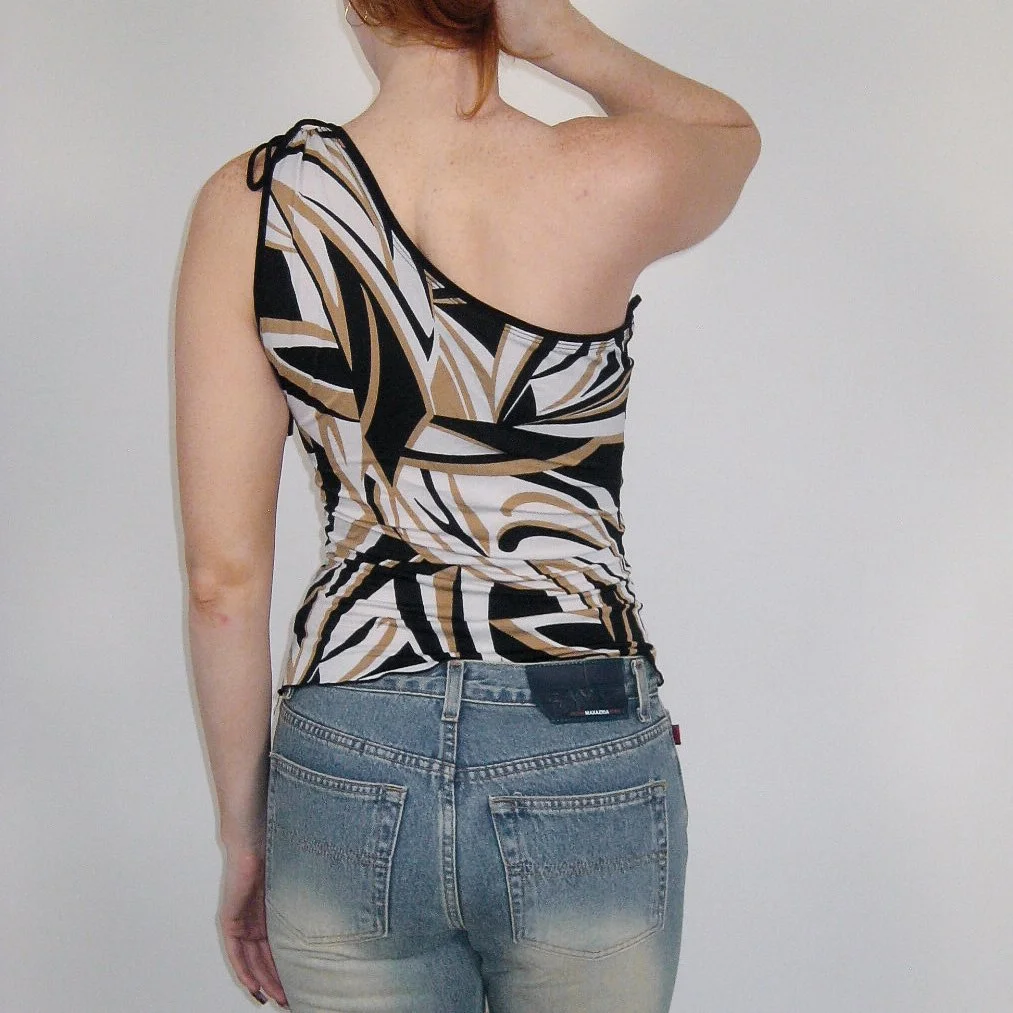 ♡ vintage 2000s sparkly holiday party top with stretchy strapless fit. deep red metallic glitter threading with asymmetrical beaded waist fringe.